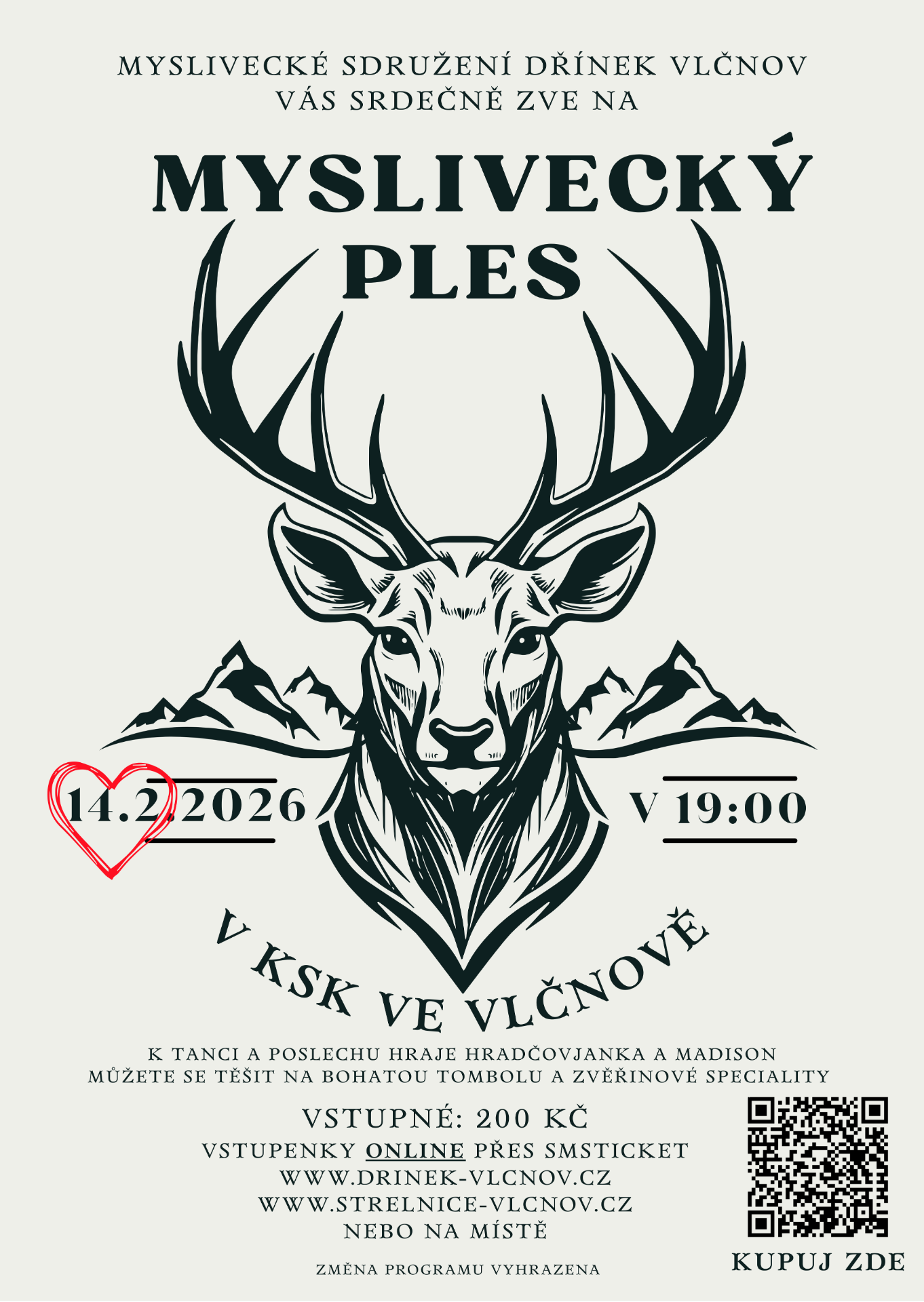 Chtěli bychom vás pozvat na Myslivecký ples, kde k tanci a poslechu bude hrát dechová hudba Hradčovjanka a rocková kapela Madison.