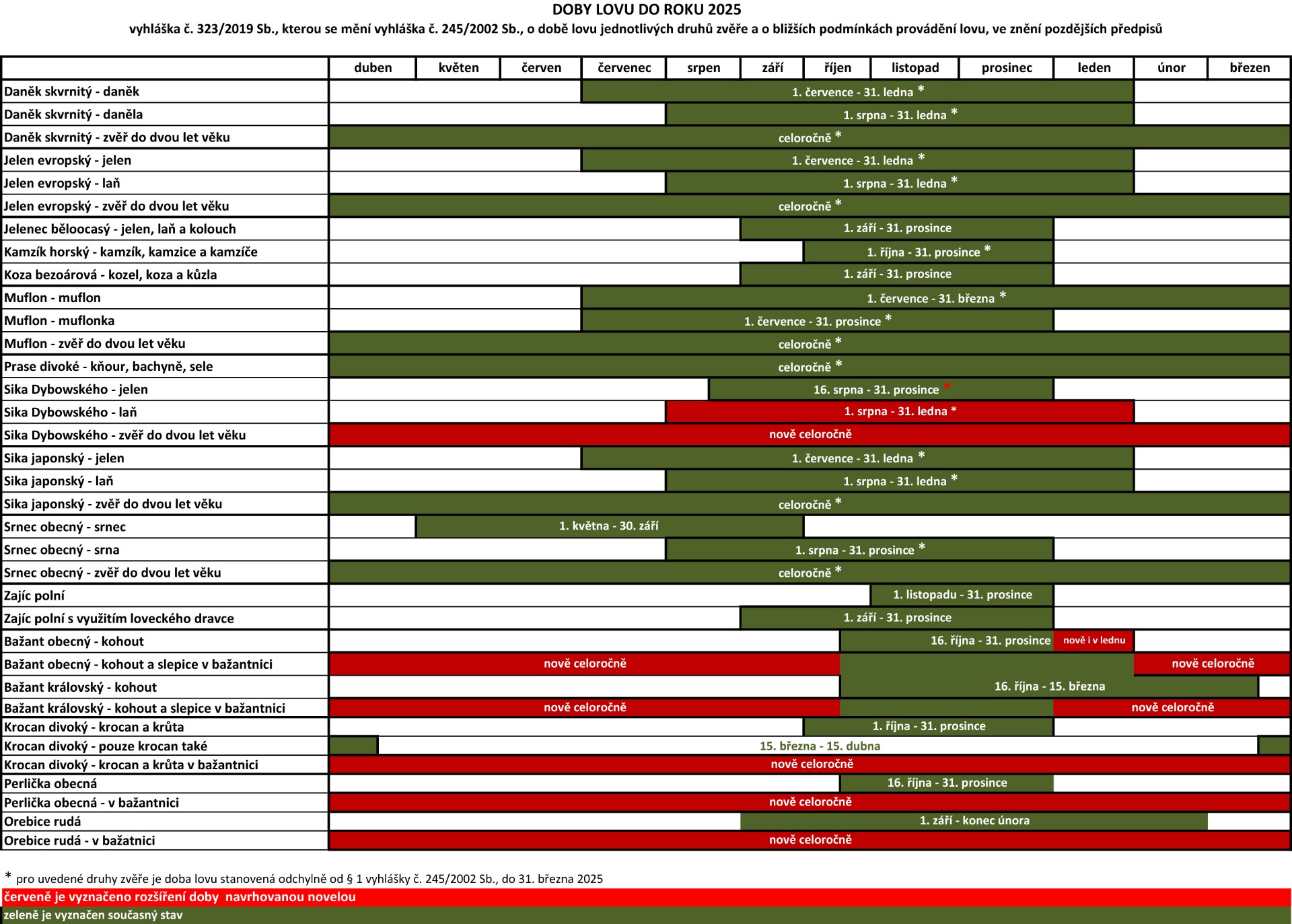 Informace hlavně pro nemyslivce, aby věděli, kdy se která zvěř loví.